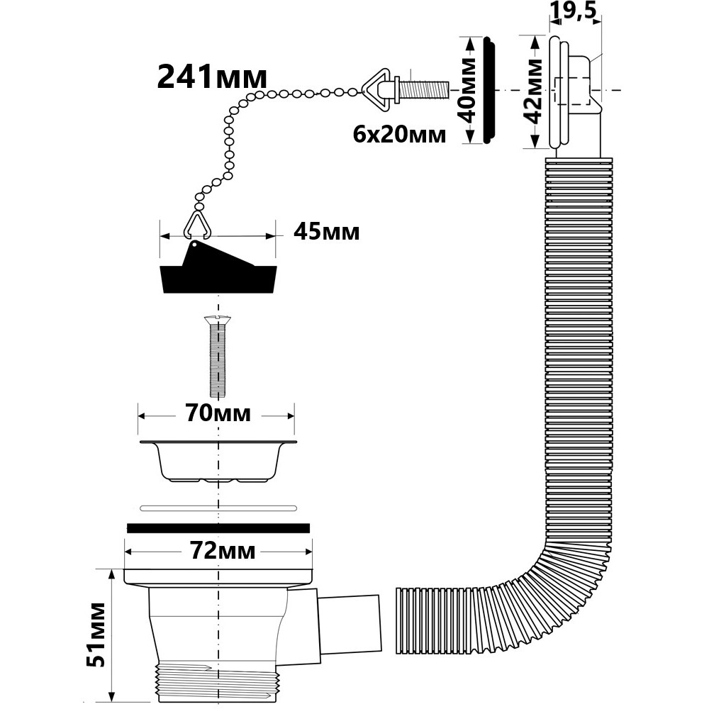 Опис Злив для кухонної мийки з переливом вертикальним 1 1/2*70 mm HC17PR