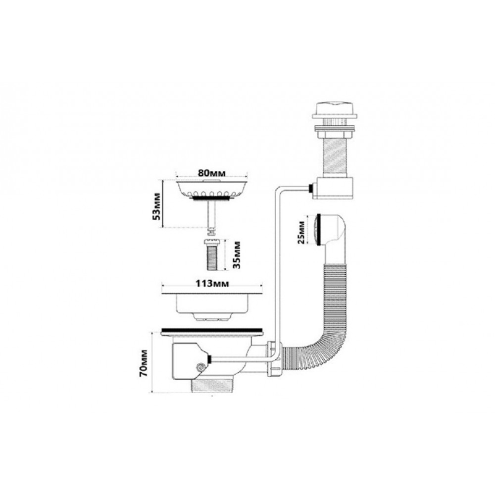 Опис Злив для кухонної мийки-автомат з круглим переливом PUFS113-CP-25 11/2