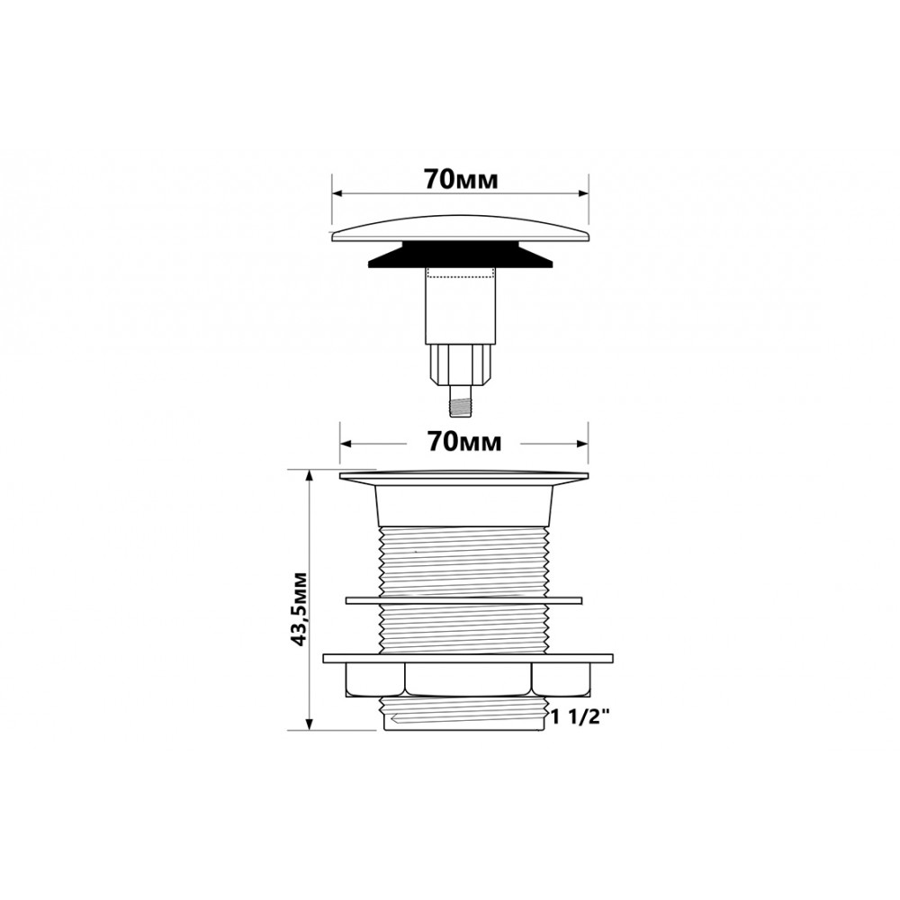 Злив до кухонної мийки 70 мм з корком "клік-клак" CBW70-CB (#13696-24)