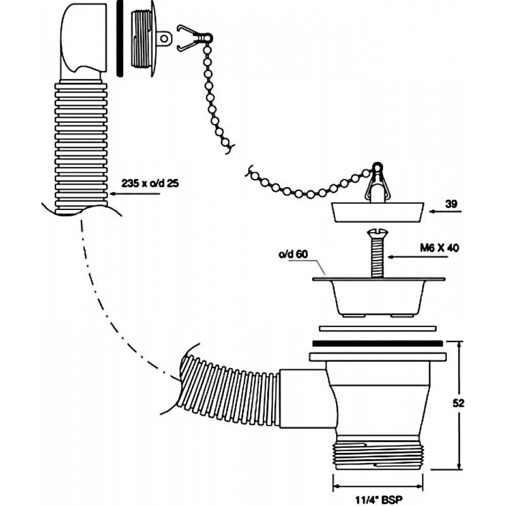 Опис Злив з переливом для умивальника FVW1PC-B-25
