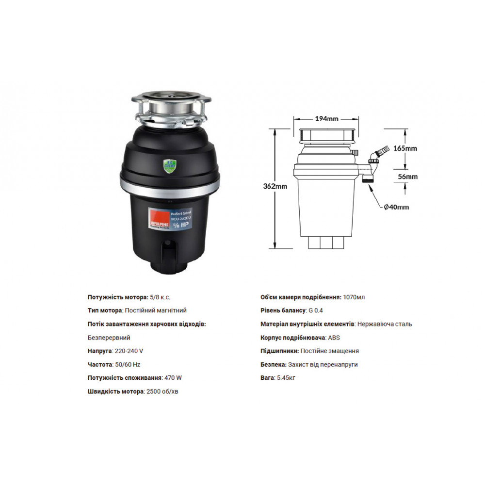 Опис Подрібнювач харчових відходів з пневматичним перемикачем WDU-2ASEU-POL