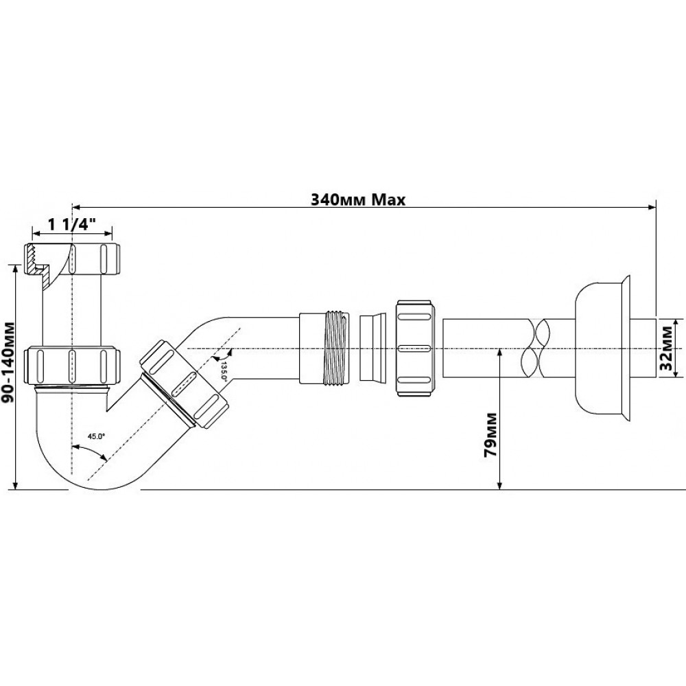 Опис Сифон для біде 1 1/4х32 з розетою без зливу HC23