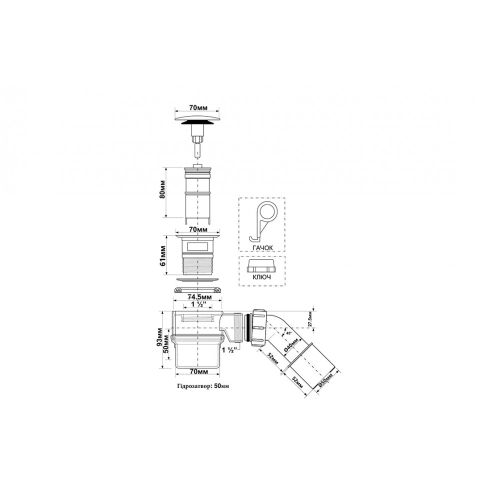 Тип продукції: Сифон для ванни.