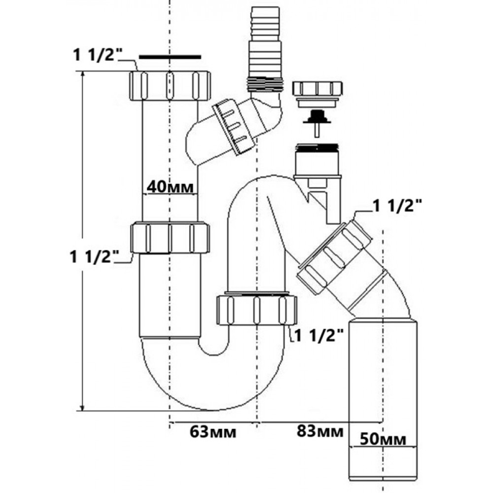 Опис Сифон для кухонної мийки (11/2х50 мм) з підключенням до пральної машини TP31VW50