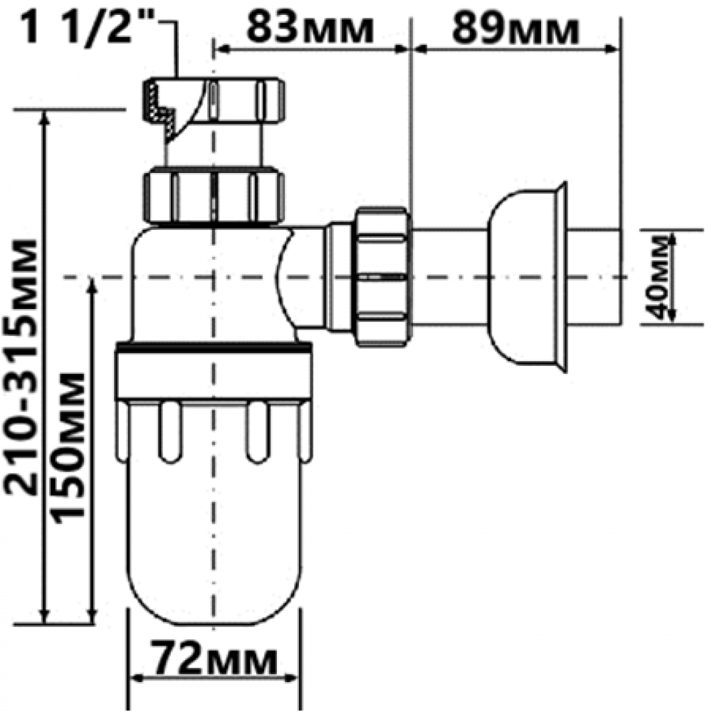 Опис Сифон для кухонної мийки великий 1 (1/2х40) без зливу C31ARPF ресторанний