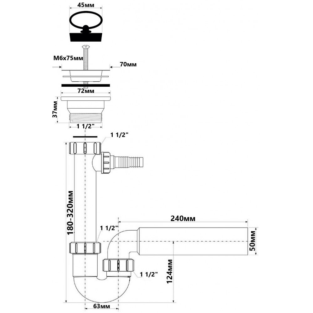 Опис Сифон для кухонної мийки з підключенням до пральної машини зі зливом 11/2х70 мм HC7HC15