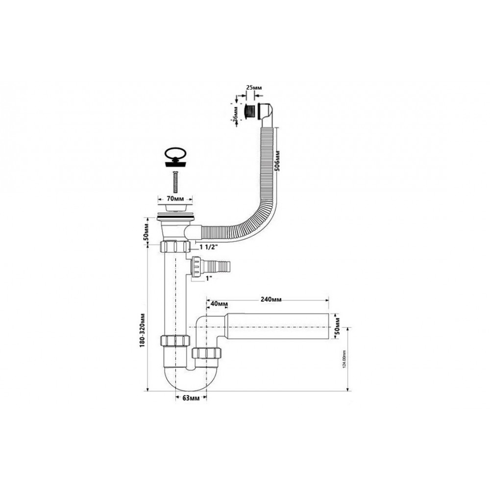 Тип продукції: Сифон для кухонної мийки.