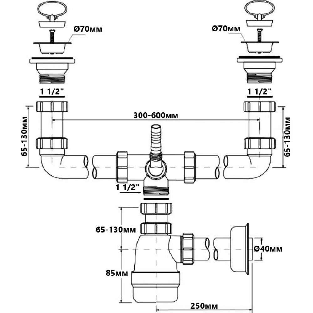 Опис Сифон для кухонної мийки подвійний 2х6/4х50 мм CDBAWW-P