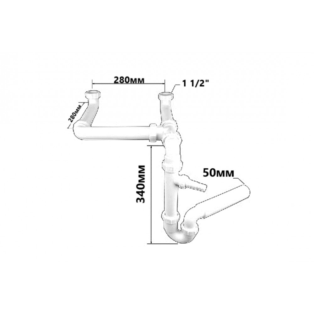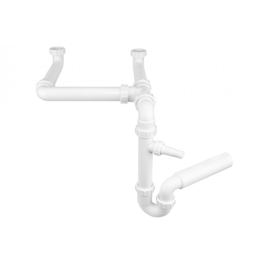 Опис Сифон для кухонної мийки подвійний з підключенням до пральної машини, без зливів з подовженням 1 1/2*50мм HC7-SSK-POL