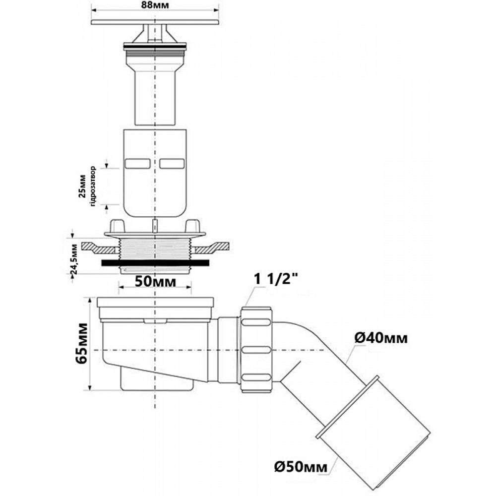 Сифон для низького піддона 60 мм, отвір 40/50 HC252588B (#13881-24)