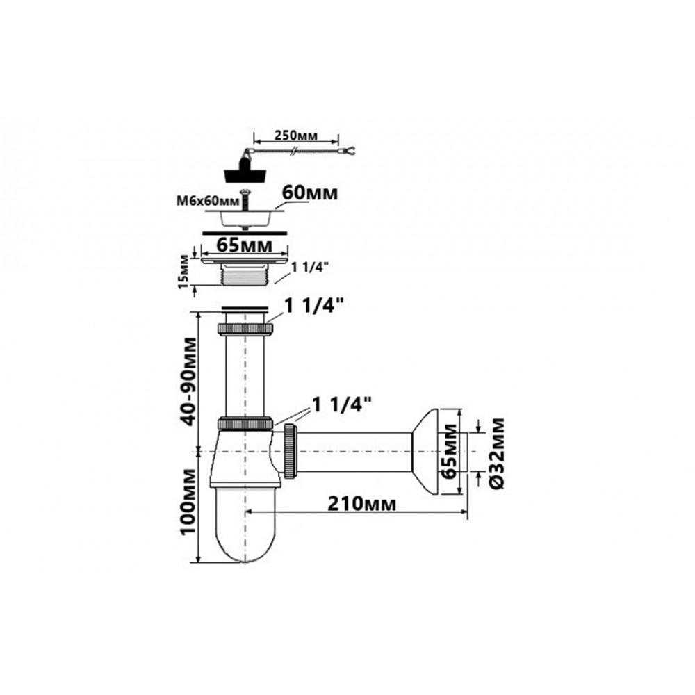 Опис Сифон для умивальника (5/4"х32 мм) хром 200+255CB