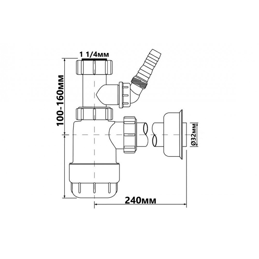 Опис Сифон для умивальника з підключенням до пральної машини (1/1/4х32) HC2WM-32