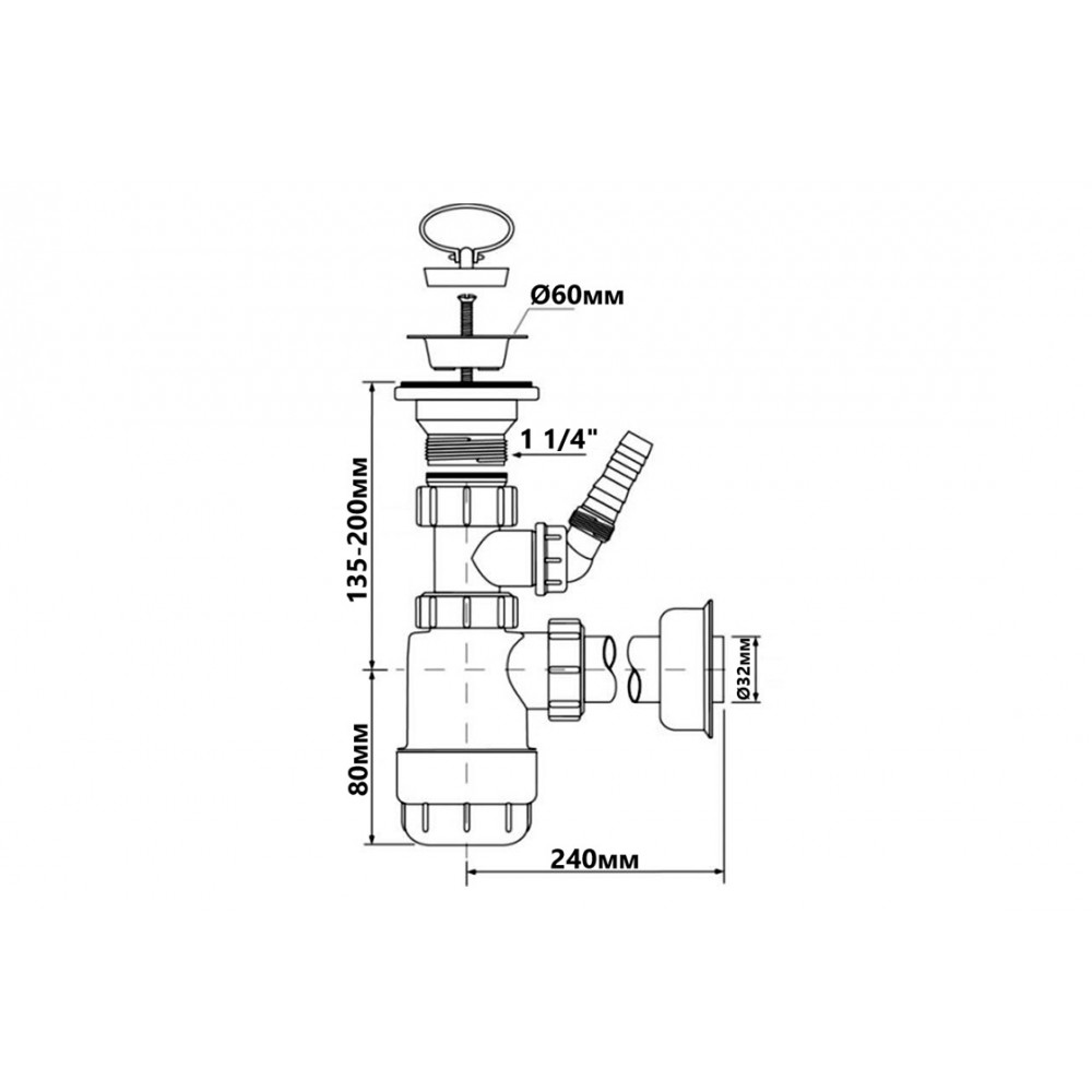Опис Сифон для умивальника з підключенням до пральної машини HC1LWM