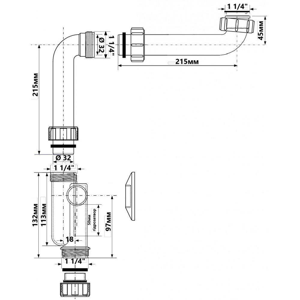 Опис Сифон для умивальника з подовжувачем, пристінний 1 1/4" х 32мм HC13SPS-X32PF