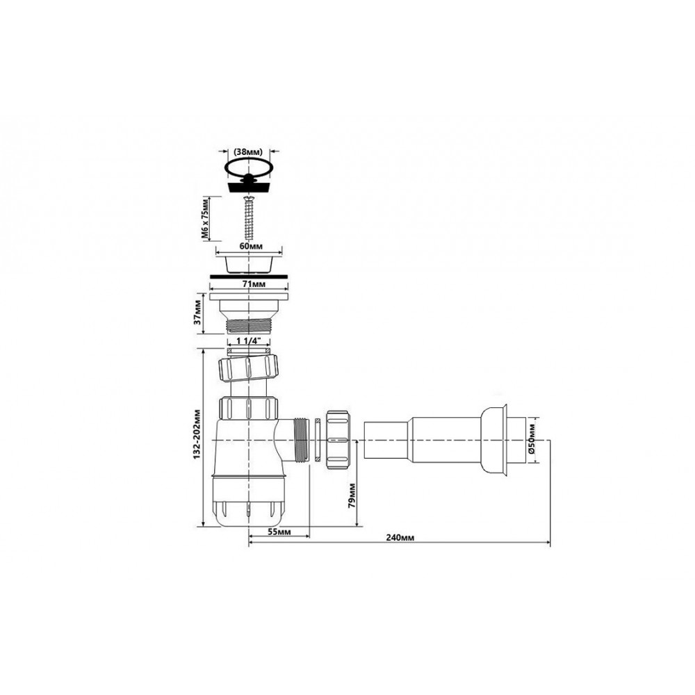 Опис Сифон для умивальника низький 1 1/4″x50 мм HC1L-50
