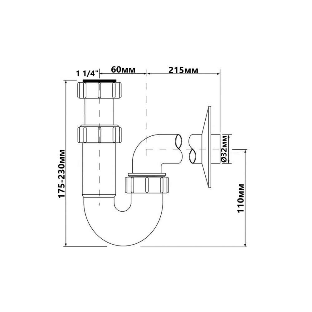 Опис Сифон для умивальника трубний без зливу (5/4х32) HC4PF-32