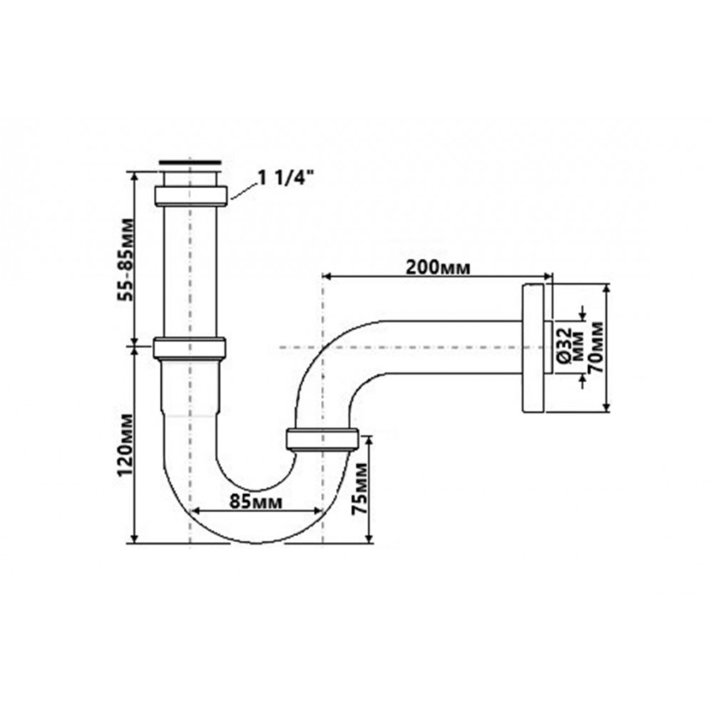Опис Сифон для умивальника трубний без зливу 11/4х32 мм 215-M хромований PREMIUM
