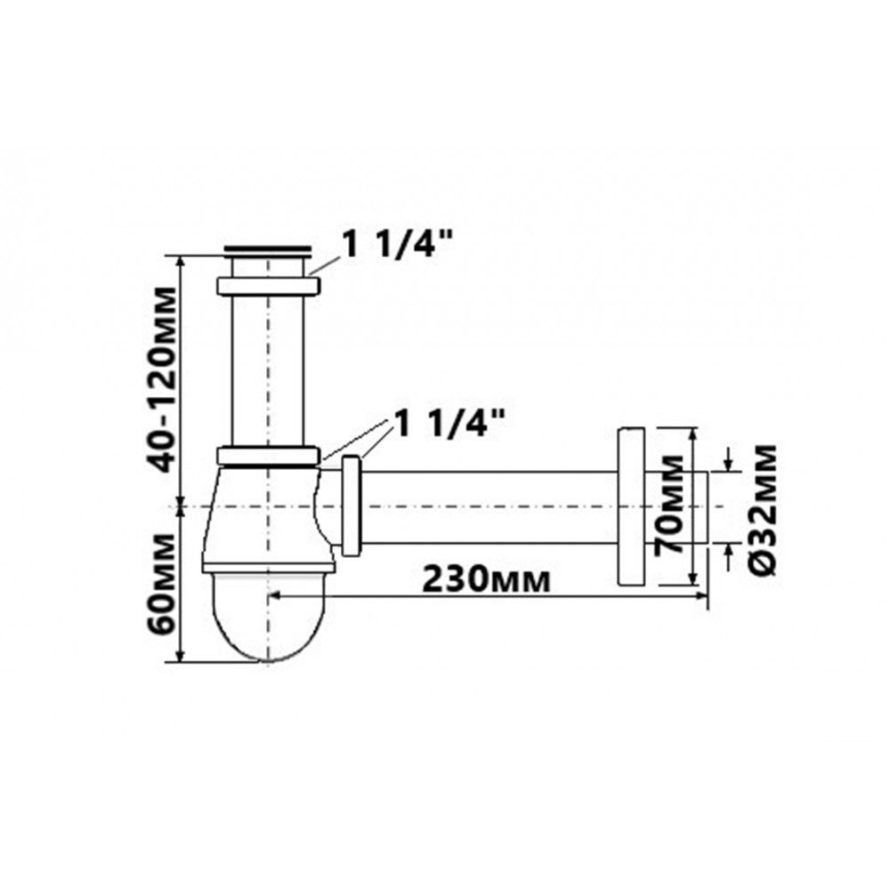 Сифон для умивальника/біде без зливу (11/4х32 мм) 220-M PREMIUM
