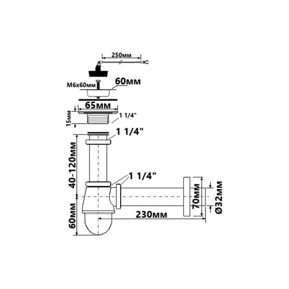 Сифон до умивальника (хром) 220/255M з корком (#13958-01)