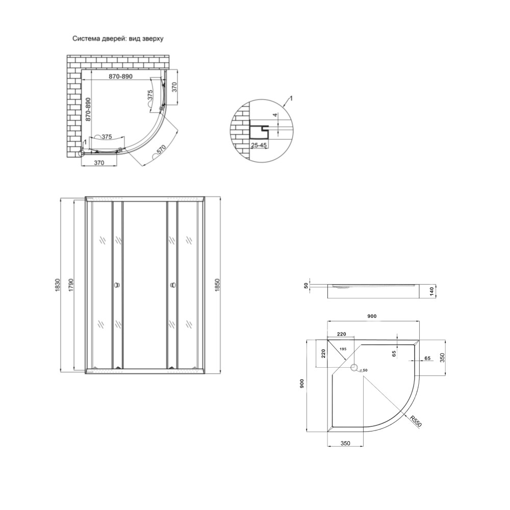 Характеристики Lidz Набор: Душевая кабина Latwa SC90x90.SAT.LOW.DGR, полукруглая, стекло тонированное 4 мм + Душевой поддон Kapielka ST90x90x14