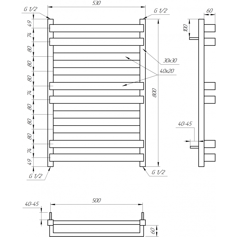 Дизайнерська сушка для рушників, універсальна з нержавіючої сталі, підходить для водяного та електричного підключення (тен).