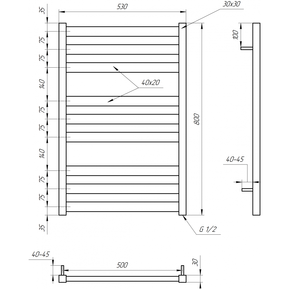 Дизайнерська сушка для рушників, універсальна з нержавіючої сталі, підходить для водяного та електричного підключення (тен).