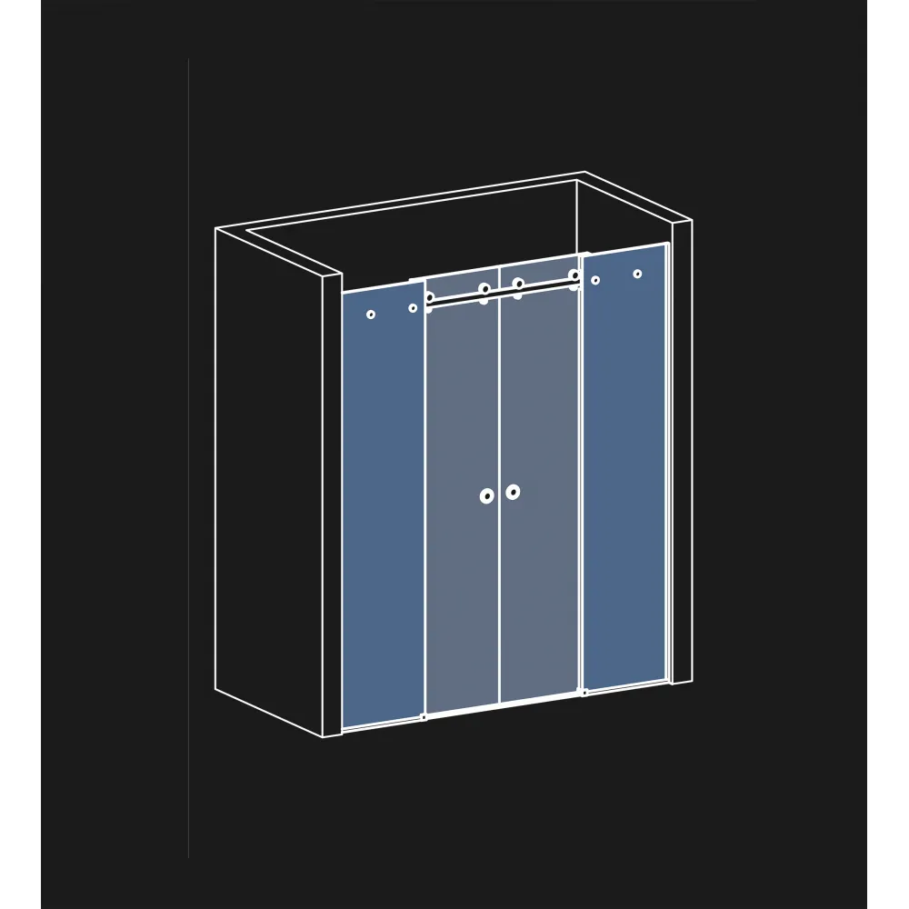 По-перше, візуально скляна поверхня не обмежує простір, по-друге, сприяє проходженню світла в кімнату, а по-третє, саме роздвижний тип пересування конструкції не заважатиме при відкриванні дверей. Ви можете обрати підходящі розміри дверей. Дана модель складається з чотирьох секцій, дві з яких є мобільними, а дві стаціонарними.