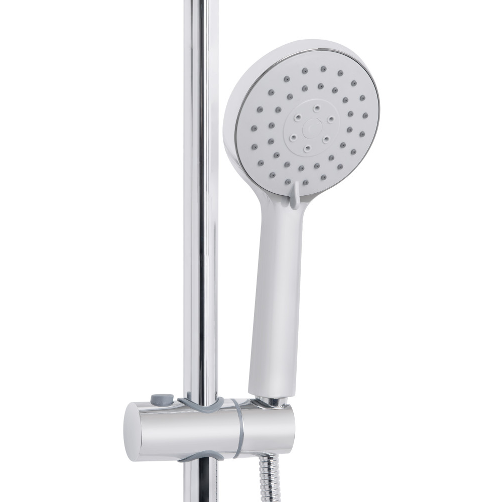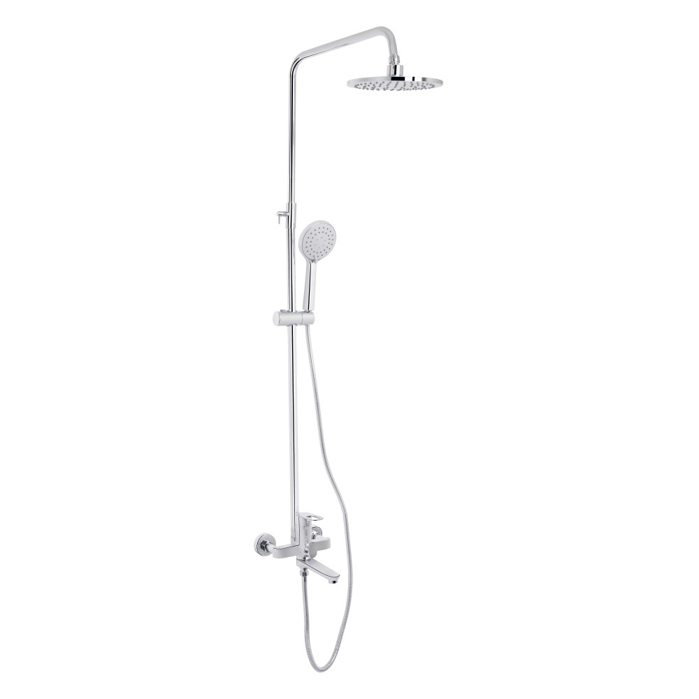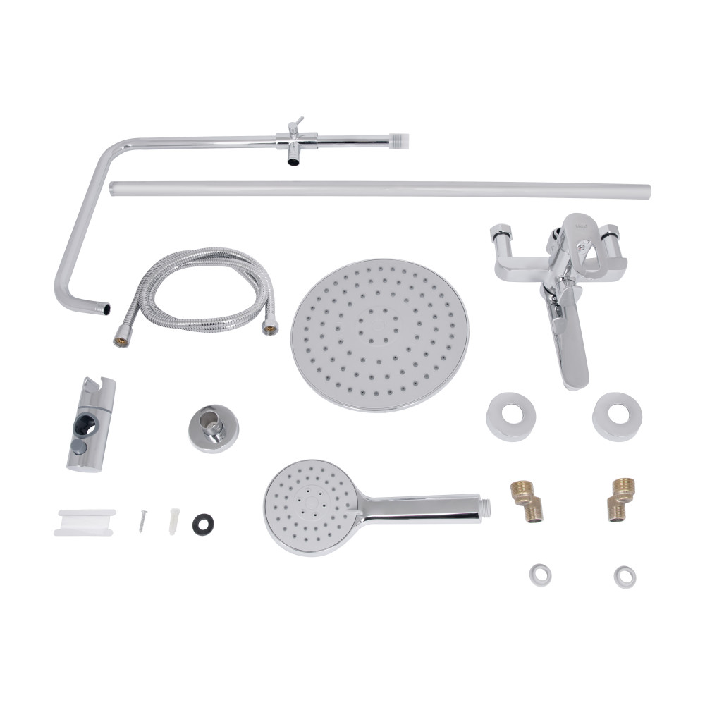 | Комплектація | Змішувач, кронштейн для верхнього душу, лійка для верхнього душу, кронштейн для ручного душу, лійка для ручного душу, душовий шланг, душова стійка, кріплення. |