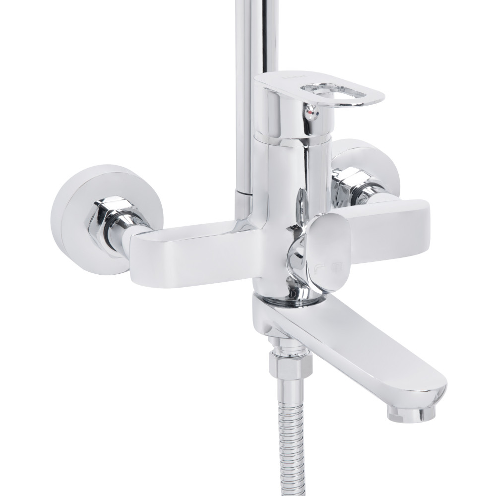 Душова система Lidz Latwa 1031 — універсальне рішення з хромованим покриттям та виливом, розраховане на три споживачі. Оснащена верхнім і ручним душем, а також виливом для наповнення ванни. Перемикач дозволяє легко обирати потрібний режим подачі води, а керамічний картридж забезпечує плавне регулювання температури та напору. Корпус виготовлений із міцних, стійких до корозії матеріалів, що гарантує довговічність і надійність системи.