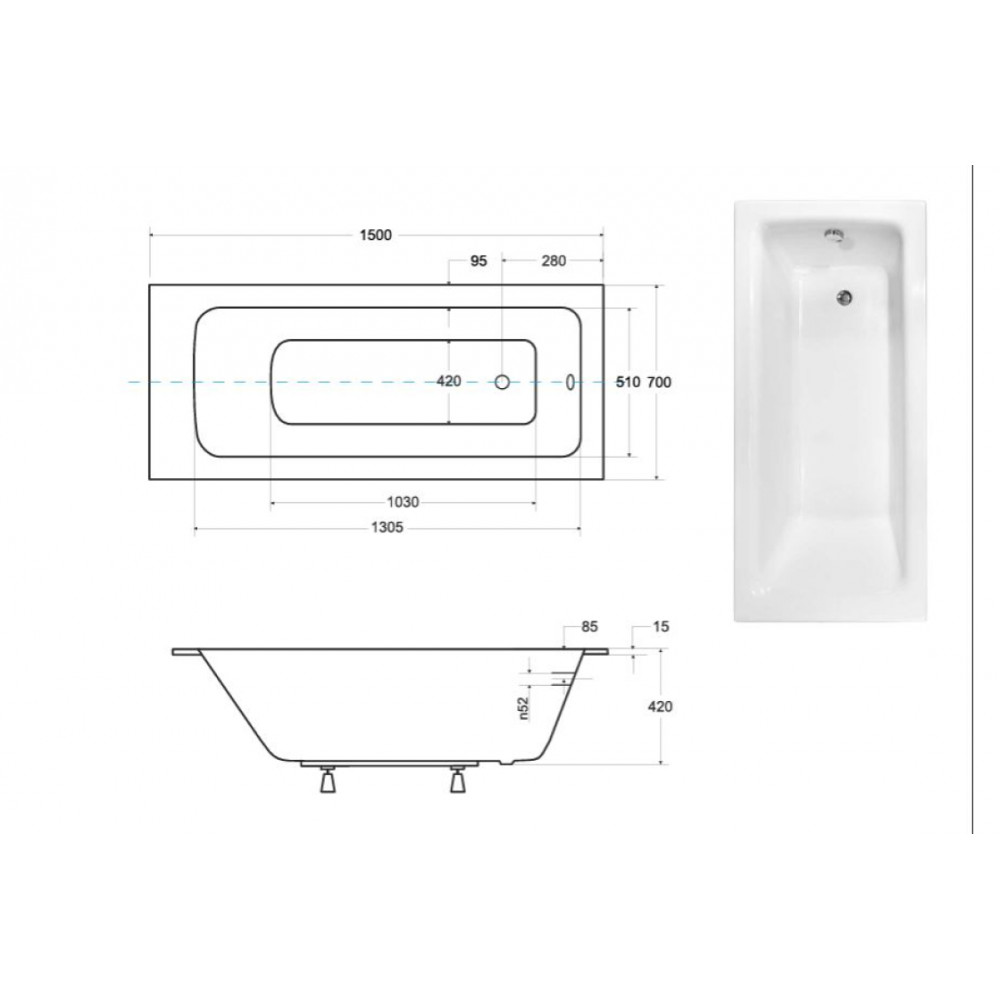 Опис Ванна акрилова TALIA SLIM 170х75 (соло) без ніг