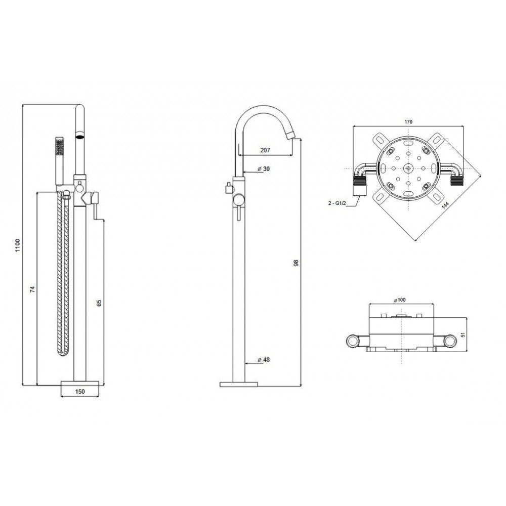 Опис Змішувач до ванни вільностоячий VEO I золото брашоване